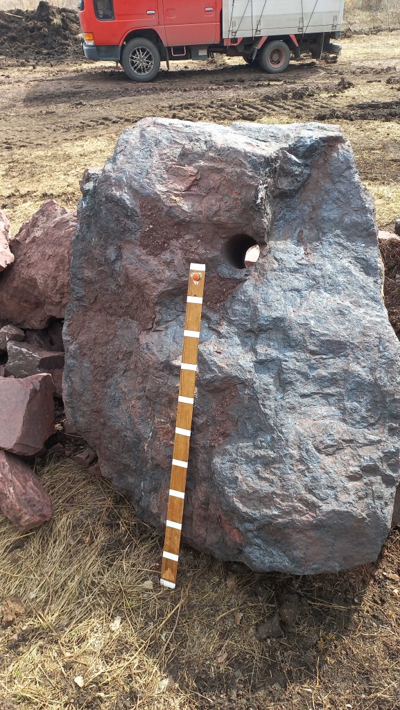 Чтобы ориентировочно понять размер глыбы представьте себе 1 кубический метр из каменной породы. Так вот, вес 1м3 камня около 1 тонны.